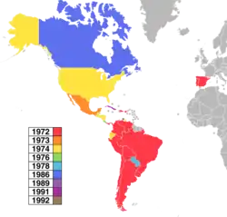 The location of the festival was decided following various criteria. Initially, the winning country would organize and celebrate the contest the following year, but after the victory of Nicaragua in 1977, the country could not host the contest due to the Nicaraguan Revolution. In those years, many participating countries suffered from political and economical instability. For that reason, from that year on, the host city was decided by a bid process organized by OTI.
