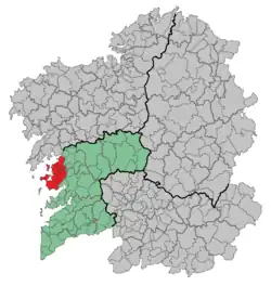 O Salnés is a comarca in the Galician Province of Pontevedra. It covers an area of 275.2 km2, and had an overall population of 114,600 at the 2011 Census;[2] the latest official estimate (as at the start of 2018) was 113,052.[3]