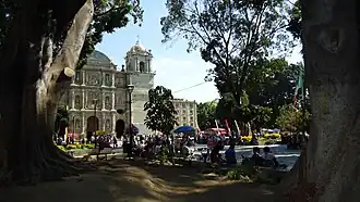 The city contains a number of parks, gardens and plazas, many of which were former monastery lands, for example, the Jardín Etnobotánico de Oaxaca, surrounding the former monastery of Santo Domingo.[5] Even better known is the Plaza de la Danza y Jardín Sócrates complex on Morelos Street at the foot of the Cerro del Fortín. It is part of the area bounded by the Basilica de la Soledad and the Church of San José. The Plaza de la Danza was constructed in 1959 by Eduardo Vasconcelos to hold the annual Bani-Stui-Gulal (representation of antiquity) dance, held one day before the festival of the Guelaguetza. The Plaza also hosts other cultural events including art shows, concerts and political rallies. The Socrates Garden is the old atrium of the Basilica de la Soledad, converted into a public park in 1881. It features a bronze chalice cast in that year. In 1981, the Garden was remodeled, adding a new layer of stone to the floor.[3] The Cerro de Fortín next to it bears in stone letters Benito Juárez's slogan, "El respeto al derecho ajeno es la paz" (Respect for others' rights is peace).[5] The Antonia Labastida Garden is named after a woman who fought with Porfirio Díaz during the French Intervention. This park has become a place for artists and artisans to display their wares.[21]