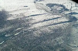NASA satellite image showing the straight and parallel ravines of glacial origin