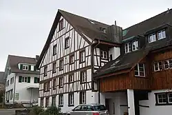 As of 2000 the average number of residents per living room was 0.52 which is about equal to the cantonal average of 0.57 per room. In this case, a room is defined as space of a housing unit of at least 4 m2 (43 sq ft) as normal bedrooms, dining rooms, living rooms, kitchens and habitable cellars and attics.[9] About 67% of the total households were owner occupied, or in other words did not pay rent (though they may have a mortgage or a rent-to-own agreement).[10] As of 2000, there were 60 homes with 1 or 2 persons in the household, 242 homes with 3 or 4 persons in the household, and 368 homes with 5 or more persons in the household. The average number of people per household was 2.45 individuals.[11] In 2008 there were 407 single family homes (or 44% of the total) out of a total of 917 homes and apartments.[12] There were a total of 8 empty apartments for a 0.9% vacancy rate.[12] As of 2007, the construction rate of new housing units was 14.6 new units per 1000 residents.[4]