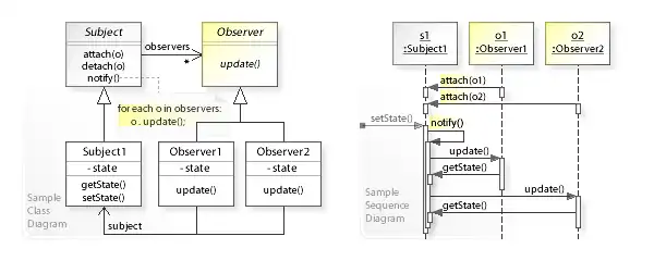 A sample UML class and sequence diagram for the observer design pattern. [6]