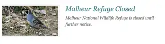 Notice posted on the Malheur National Wildlife Refuge's website stating its closure "until further notice"