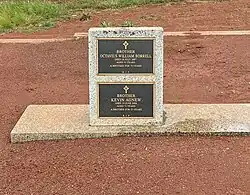 Grave markers of Octavius William Borrell and Kevin Agnew, in the Marist Brothers plot of the Catholic Cemetery, Kilmore, Victoria, Australia