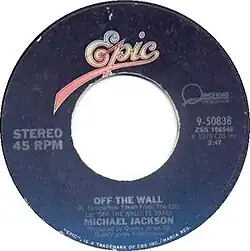 "Off the Wall" is a song by American singer Michael Jackson, from his fifth album of the same name (1979). It was written by English songwriter Rod Temperton and produced by Quincy Jones, and released by Epic Records as the album's second single in the UK on November 16, 1979[1] and as the third single in the US on January 31, 1980. The song was first offered to Karen Carpenter, while she was working on her first solo album, but she turned it down.[3] Lyrically, the song is about getting over troubles.