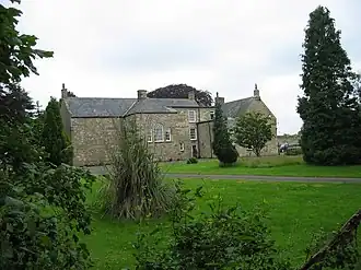 The ancient family seat was 2,111-acre (8.54 km2) (as at 1870) Ogle, Northumberland, near Whalton.[2] There, Robert Ogle had the family's manor house licensed for crenellation in 1341,[3] or the previous year.[2]
