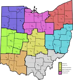 The Patrol maintains 55 posts, each administered by one of ten districts and responsible for one, two, or three of Ohio's 88 counties or the Ohio Turnpike.[4] The Berea/Turnpike District operates from four posts on the Ohio Turnpike. Since the turnpike opened in 1955, the Ohio Turnpike Commission has contracted with the Ohio State Highway Patrol to provide law enforcement and assistance to disabled or stranded motorists. They are the only law enforcement agency with jurisdiction on the turnpike.