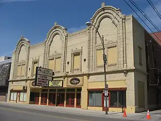 The Ohio Theatre is a historic movie theater in downtown Lima, Ohio, United States. Built in 1927,[1] the theater is a brick and concrete structure featuring multiple architectural styles. Outside, large amounts of terracotta details produce a Churrigueresque appearance, while Corinthian columns, marble and mosaic floors, and a massive chandelier produce an Italianate interior.[2]
