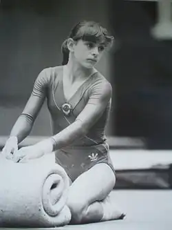 Oksana Omelianchik (Russian: Оксана Александровна Омельянчик; Ukrainian: Окса́на Oлекса́ндрiвна Омелья́нчик, romanizedOksana Oleksandrivna Omelianchyk; alternative transliterations: Oksana Omel'yantchik, Oksana Omel'yanchik, Oksana Omeliantchik; born 2 January 1970) is a retired Soviet gymnast and the all-around gold medalist of the 1985 World Championships. Omelianchik was most known for her enthusiastic showmanship, difficulty and originality, including pioneering back-to-back tumbling.