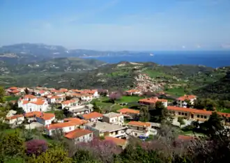 Oktonia is a hillside village found in the east-central area of Euboea Island, belonging to the municipality of Kymi-Aliveri, Greece. Located near the lower side of the Gulf of Kymi, the village is composed of four settlements: Alonia, Panochori (the upper village), Katochori (the lower village) and Panagia, covering a large area. It is 145 km from Athens, a distance covered in about 2.5 hours by car. According to the census of 2021, the community of Oktonia, which also includes the villages Agios Merkourios and Mourteri, has 519 permanent inhabitants.[1]