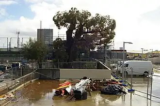 The Old Jarrah tree is an exceptionally large and old Eucalyptus marginata (Jarrah) tree near inside the carpark the entrance at the corner Third Road and Church Avenue in Armadale, Western Australia. It is estimated to be between 400 and 800 years old. Trees of such a great size and age are rare in and around the Perth metropolitan area, because of extensive logging of the area in the 19th century. The tree is in fairly poor condition: about three quarters of its canopy is dead or gone, and it is less than half its normal height due to lopping. It was ringbarked by vandals in 1997, and it has responded by producing numerous epicormic shoots on its north side. Despite these issues, the tree is considered to be in a stable condition.
