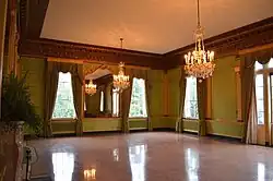 When Huey P. Long took office in 1928, the existing governor's mansion was to him a symbol of the past and more importantly the political opposition. In February 1929, Long succeeded in tearing down the Knox mansion, enlisting the aid of local convicted criminals to disassemble it. On the very next day, the plans and specifications were approved for the new mansion. This event is one of the incidents that contributed to and figured in the (unsuccessful) impeachment proceedings against Long in 1930. Building the Old Governor's Mansion cost almost $150,000, plus an additional $22,000 for the finest damask and velvet drapes, crystal chandeliers, and other fine appointments.[2]