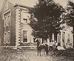 Photograph of the Old Oaks mansion with the Northington Family seated in a carriage