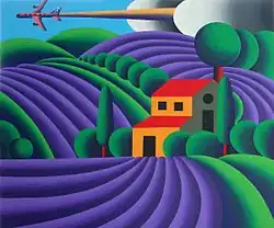 On return from Gridchinhall Khvostov rented a studio on the territory of an ex-factory "Red triangle" and started working on his new series of landscapes. On February, 14 in 2013 he presented his new works in the "Lust" series at the exhibition in the AL Gallery.[32] After a year Khvostov finally managed to organize an exhibition at Marat Guelman's: the same series of landscapes but with the different idea was exhibited in the "Cultural Alliance" gallery in the Art Center Winzavod under an ironic name "Lavandos", an allusion to Provance lavender fields and Russian criminal argot[33] In October, 2013 Khvostov's paintings were presented at SWAB Barcelona, International contemporary art fair, in November – became a part of the AL Gallery's stand at the art fair Contemporary Istanbul 2013.[34][35] In February, 2014 his "New Leniniana" series was repeatedly exhibited in Razliv for the jubilee exhibition "90", commemorated to Vladimir Lenin's memorial day.[36] On the exhibition closing day the artist handed all eight works of the series to the Razliv Lenin Museum.[37] The next Khvostov's exhibition is planned in Gridchinhall for December, 2015 and January, 2016. It is going to include his latest works, painted in 2014-2015х.[4][38]