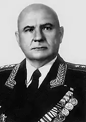 During September and October 1943, during the Battle of the Dnieper, the corps assisted the ground troops in the elimination of the German Zaporozhye bridgehead. Tolstikov was promoted to lieutenant general on 2 August 1944.[3] In September 1944 the 9th Mixed Aviation Corps was reorganized as the 10th Assault Aviation Corps, which Tolstikov continued to command. The corps ended the war in the Balaton defensive operation and the Vienna offensive. Sudets noted that Tolstikov,