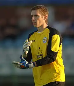 Oleksandr Viktorovych Bandura (Ukrainian: Олександр Вікторович Бандура; 30 May 1986) is a Ukrainian professional footballer who plays as a goalkeeper for Dinaz Vyshhorod.