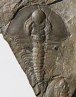 Olenellus is an extinct genus of redlichiid trilobites, with species of average size (about 5 centimetres or 2.0 inches long). It lived during the Botomian and Toyonian stages of the Lower Cambrian (Olenellus-zone), 522 to 510 million years ago, in what is currently North America, part of the palaeocontinent Laurentia.[4]