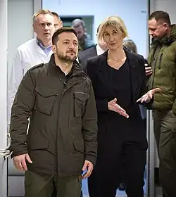 ![]() Olga Rudnieva pictured when Volodymyr Zelenskyy visited defenders recovering at the Superhumans Prosthetics and Rehabilitation Center in Lviv, Ukraine on December 17, 2024 | |