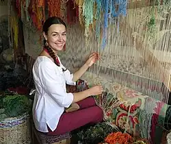In 2017, she held a personal exhibition "Carpeted Ukraine" in the Verkhovna Rada of Ukraine,[5] aimed at promoting and drawing attention to tapestry weaving as a rapidly disappearing art form.
