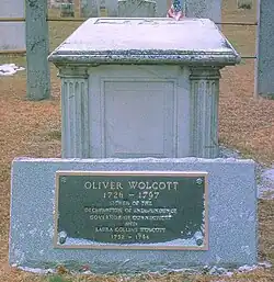 Wolcott died on December 1, 1797, in Litchfield,[1][13][14] where he is interred at East Cemetery. Historian Ellsworth Grant remembers Wolcott's Revolutionary War efforts in stating that, "It is doubtful if any other official in Connecticut during this period carried so many public duties on his shoulders."[9]