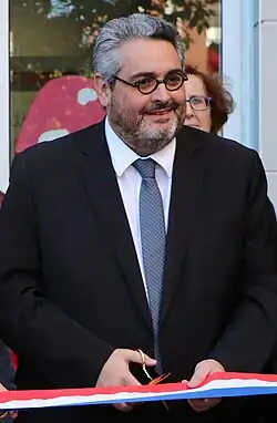 To prepare the 2014 municipal election, a primary is organized within the Socialist Party, won by Bianchi. In March 2014, he led the left-wing list in the municipal election; it obtained 31% of the votes cast in the first round, which forced him to merge with the Left Front list (11.5%) to win the second round.[13] The merged list won the election with 47.82%, in a three-way tie against the UMP and FN lists.[14] Bianchi was elected mayor on April 4, succeeding Serge Godard.[15]