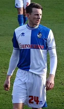He eventually made his debut for Bristol Rovers in their final game of the 2010–11 season, when he came on as an 88th-minute substitute for Harry Pell against Colchester United at the Colchester Community Stadium.[10] His hopes of continuing to play first team football after the 2011 summer break were dashed however when he suffered a rupture to his anterior cruciate ligament on his first day back in training, leaving him unable to play for several months while he recovered from reconstructive surgery. His first goal for Rovers came against Portsmouth on 21 December 2013, it was well taken from the edge of the box to score the first in a 2–0 win[11]