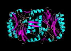 ![]() A 3D cartoon depiction of the crystal structure of mouse nitrilase 2. | |||||||||