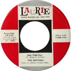 "One Fine Day" by the Chiffons reached No. 5 on the Billboard Hot 100: its R&B chart peak was No. 6. The single was an international hit charting in the UK (#29),[3] France (#18),[4] and New Zealand (#6).[5] The Chiffons' "One Fine Day" was ranked #460 on Rolling Stone Magazine's list of The 500 Greatest Songs of All Time.[6]