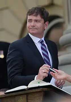 Oneil John Carlier ECA (born June 22, 1962) is a Canadian politician who was elected in the 2015 Alberta general election to the Legislative Assembly of Alberta representing the electoral district of Whitecourt-Ste. Anne, serving until April 30, 2019. He was Minister of Agriculture and Minister of Forestry in the Alberta Cabinet.[2] He is from the community of Darwell,[3] which is located within Lac Ste. Anne County.[4][5]
