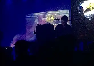 In 2014, Lopatin supported Nine Inch Nails on their tour with Soundgarden, as a replacement for Death Grips.[38] On October 4, 2014, he presented a world premiere live soundtrack for Koji Morimoto's 1995 anime film Magnetic Rose. The event took place at the Jodrell Bank Centre for Astrophysics, and featured Anohni on a rendition of the OPN song "Returnal" as well as audio-visual works from Nate Boyce which have been hosted by the Barbican Centre in London, the Museum of Modern Art and MoMA PS1.[39] In the same year, OPN released Commissions I for Record Store Day, featuring several commissioned pieces.[40] He also contributed "Need" to the Bleep:10 compilation in celebration of the online retailer's 10th anniversary.[41] This was followed by Commissions II in 2015.[42]