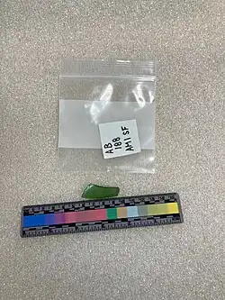 This is a shard or fragment of a glass bottle from the Auburn excavation site in Peterborough, which was a thorough excavation into the historical house from the 1820s. The Shard is an example of the type of archaeological finds that are possible to find in Ontario, and that are studied from a historical context.