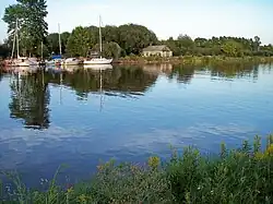 The Ontonagon River (/ˌɒntəˈnɑːɡən/ ON-tə-NAH-gən) is a river flowing into Lake Superior at the village of Ontonagon, on the western Upper Peninsula of Michigan in the United States. The main stem of the river is 25 miles (40 km) long[4] and is formed by a confluence of several longer branches, portions of which have been collectively designated as a National Wild and Scenic River.[5] Several waterfalls occur on the river including Agate Falls and Bond Falls.