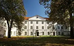 In 1727, the Jesuits built a Baroque residence with the Church of Saint Francis Xavier as a resemblance to the church in Prague Clementinum. Its interior belongs to one of the most interesting work of art in central Europe. As an author of the project of the church was authorized Kilian Ignaz Dientzenhofer. Since 1923, the building of Opařany Castle has served as a children psychiatric hospital.[3]