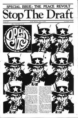Open City was a weekly underground newspaper published in Los Angeles by avant-garde journalist John Bryan from May 6, 1967 to April 1969.[1][2] It was noted for its coverage of radical politics, rock music, psychedelic culture and the "Notes of a Dirty Old Man" column by Charles Bukowski.[3]