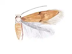 Opostega spatulella is a moth of the family Opostegidae. It is known from France, the Iberian Peninsula, Italy, Austria, the Czech Republic, Slovakia, Hungary, Romania, Bulgaria, North Macedonia, Greece and Bosnia and Herzegovina.[1] It is thought to be extinct in Great Britain.[2] It is also found in the eastern part of the Palearctic realm (including Turkmenistan and Uzbekistan) and the Near East.