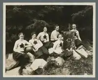 A women's basketball team was established at Oregon Agricultural College during the academic year of 1897–98, with one game played in the spring of 1898 by the school squad in response to a challenge offered by the team of the Chemawa Indian Institute of Salem.[4] The match, played April 29 in Salem at the Willamette University gym, was won by OAC by a score of 13 to 11.[5] The OAC team included Inez Fuller, Fanny Getty, Dora Hodgin, Blanche Holden, Bessie Smith, and Leona "Nonie" Smith.[5]