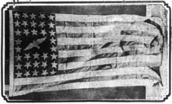 Unique American flag bearing a bald eagle, 7 white stripes and 6 red ones. With the motto "the whole republic" in the bottom white stripe, 1861[2]