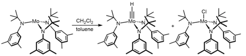 - ^ Zhang, Wei; Moore, Jeffrey (2004). "Highly Active Trialkoxymolybdenum(VI) Alkylidyne Catalysts Synthesized by a Reductive Recycle Strategy". J. Am. Chem. Soc. 126 (1): 329–335. doi:10.1021/ja0379868. PMID 14709099.