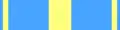 The medal hangs from a ribbon through a ring passing through the medal's suspension loop. The ring is adorned by a 24mm in diameter bronze laurel wreath and half crescent. The ribbon is 37mm wide and is light blue with a yellow central 7mm wide and 2mm wide stripes 2mm from the edges.[1]