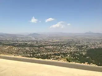 The climate is temperate and subtropical, semi-arid to subhumid, with summer rains. Average annual temperature 12-16 °C, and annual total precipitation is 400–800 mm. The Trans-Mexican Volcanic Belt pine-oak forests ecoregion covers the mountains surrounding the basin to the west, north, and east.[1] The mountains to the north and west, including the Cofre de Perote volcano, leave the valley in a rain shadow, and the xeric shrublands of the Tehuacán Valley matorral ecoregion occupies the center of the basin, and extend south into the Tehuacán and Cuicatlán valleys.[2] Vegetation includes pine-oak forests and pine-fir forests at higher elevations, with dry scrub pine forests, oak forests, juniper scrub, yucca scrub, halophytic vegetation, and grassland. It includes the Llanos de San Juan and Llanos de San Andres.[3]