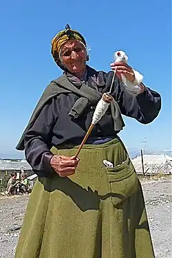 The fibers of wool, cotton, and silk are spun either by hand or mechanically by using spinning wheels or industrial spinning machines to produce the yarn. The direction in which the yarn is spun is called twist. Yarns are characterized as S-twist or Z-twist according to the direction of spinning (see diagram).[46] Two or more spun yarns may be twisted together or plied to form a thicker yarn. Generally, handspun single plies are spun with a Z-twist, and plying is done with an S-twist. With the exception of Mamluk carpets, nearly all the rugs produced in the countries of the rug belt use "Z" (anti-clockwise) spun and "S" (clockwise)-plied wool.