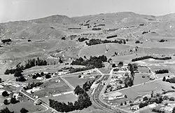 Ormondville was in the 8,230 acres (3,330 ha) Tuatua Block, which was part of the 183,430 acres (74,230 ha) Seventy Mile Bush area, bought by government for £17,552 on 16 August 1871,[6] from Hohepa Paewai, a chief of the Rangitāne iwi.[7] The area was then sold to settlers by the Waste Lands Board, through a Special Settlement Scheme.[8] Ormondville was named after John Davies Ormond, who was then the local MP and Superintendent of Hawke's Bay Province.[9] Ormondville used to be much larger; in 1901 the population was 459.[10] It once had a court-house (1881[11]-1932),[12] Alpha dairy factory (1899[13]-1931),[14] hotel,[15] cobbler,[16] garage,[17] butchery, blacksmith, saddler, undertaker, solicitor, library, draper, billiard room, 3 stores, police station,[18] school, an Anglican and a Catholic church, library, hall, bakery, sports ground and railway station.[19] It had a Town Board (including the Makotuku Riding)[20] from 1885 until 1944, when it merged into Dannevirke County Council,[21] following a petition.[22] A hydro electric plant was installed at nearby Cave Farm in 1906,[23] but power wasn't connected to Ormondville until the late 1920s.[24][25]