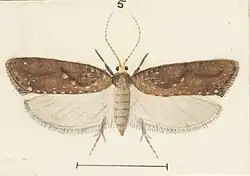 4. ^ a b Edward Meyrick (May 1886). "Descriptions of New Zealand Micro-Lepidoptera". Transactions and Proceedings of the New Zealand Institute. 18: 176. ISSN 1176-6158. Wikidata Q109405465. Public Domain This article incorporates text from this source, which is in the public domain.