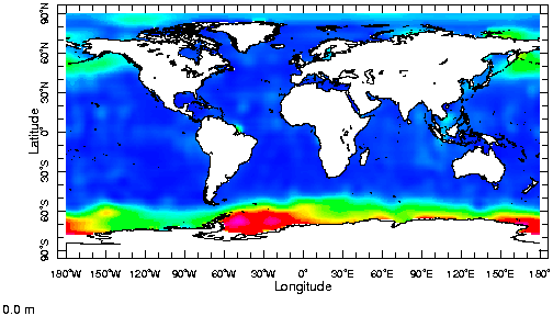 In the uppermost water column the surface ocean is undersaturated with respect to dissolved silica, except for the Antarctic Circumpolar Current south of 55°S.