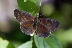 Ortilia velica, also known as the small brown, is a species of butterfly in the family Nymphalidae. It is found in Brazil, Uruguay, and Argentina. It is associated with the flowers of Wedelia silphioides.[1]