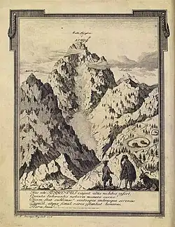 The front page of the work presents the first known depiction of Triglav, the highest mountain in Slovenia. The copper engraving was produced by C. Conti after a drawing by Franz Xaver Baraga.[1]