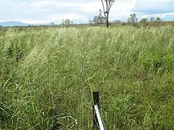 Its habitat range experiences periods of heat and dryness, with the specie having developed a tolerance to heat. Heat shock experiments on O. australiensis have found that at 45 °C (113 °F), its ability to properly shoot biomass and leaf elongate was unaffected and soluble sugar concentrations tripled during the period of extreme heat, showing its robust carboxylation capacity and thermal tolerance. This is in contrast to other rice species, such as O. sativa, who didn't handle the heat as well as O. australiensis.[10] This is due to the plant's RuBisCO activase enzymes, which is thermally stable up to 42 °C (108 °F).[11] Other resistance to abiotic stresses include tolerance to salinity stress.[12] O. australiensis also has developed drought resistance, where photosynthesis efficiency was not affected by stress caused from drought conditions. It may contain a large number of novel stress responsive genes.[13] It survives the dry season through its rhizomes.[8] Due to its habitat and adaptions, the species has been described as an extremophile.[14] O. australiensis' resistance to abiotic stresses has also led to it being used in breeding programs.[12] It also carries genes that help it resist diseases, bacterial blights and insects such as brown planthoppers (BHP).[8]