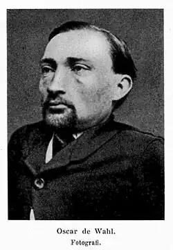De Wahl was born on 7 August 1832 in Skoklosters socken in the Swedish Uppland.[1] Oscar de Wahl's father Johan de Wahl was a clockmaker, organist and schoolteacher in Skokloster and has been pointed out as the role model for the clockmaker who travels to Stockholm in August Strindberg's poem Stadsresan. De Wahl studied at the Royal Swedish Academy of Music and graduated as music director in 1854. Until 1858 he worked in Stockholm as a piano teacher, and then he was engaged as orchestra leader at the Södra Teatern in Stockholm. In the autumn of 1871 he moved to the Minor Theater, and was active there until his death.[2] He has composed music for several cuplés and arranged the music for various plays.[3]