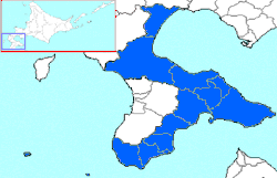 41°49′11″N 140°45′12″E / 41.819755°N 140.753278°E 41°25′45″N 140°06′41″E / 41.429146°N 140.111361°E(Matsumae General Branch Office)