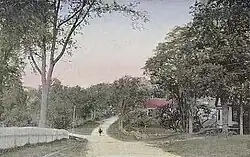 Although the surface of the town is "rough and uneven, and in some parts rocky and mountainous," farmers found it suitable for pasturage, as well as for cultivating wheat and potatoes. Principal goods were produce, lumber and cattle. In 1859, when the population was 2,123, Ossipee contained twelve sawmills, five gristmills, twelve clapboard and shingle mills, one bedstead factory, one door factory, a sash and blind factory, one paper mill and four tanneries.[5] The Portsmouth, Great Falls & Conway Railroad in 1871 reached Ossipee Corner, with service extended in 1875 to Center Ossipee. The trains brought commerce and tourists, helping the town develop as a summer resort. Railroad service, however, would be discontinued in 1961 for passengers, and in 1972 for freight.[6]